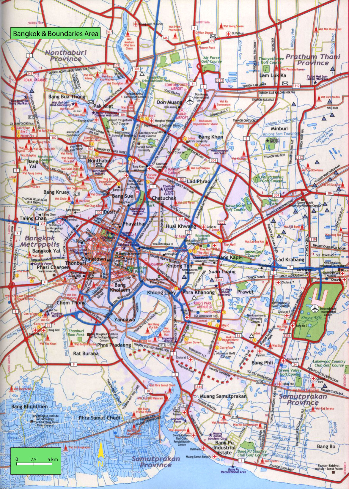 Hotels in Thailand, Thailandkarten beliebter Tourismusziele, nationaler Flughafen Don Mueang in Bangkok : |